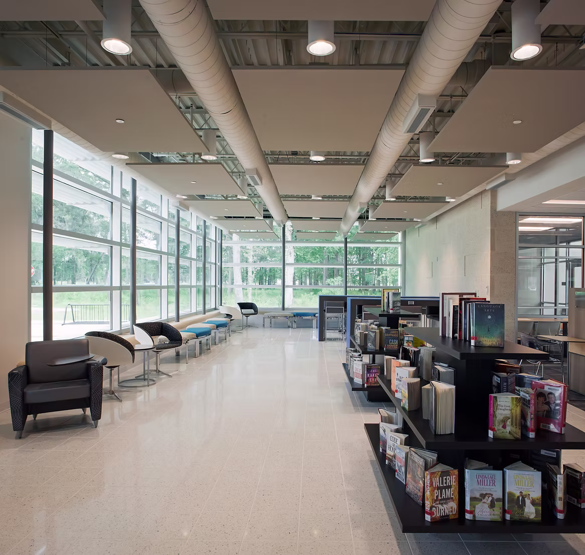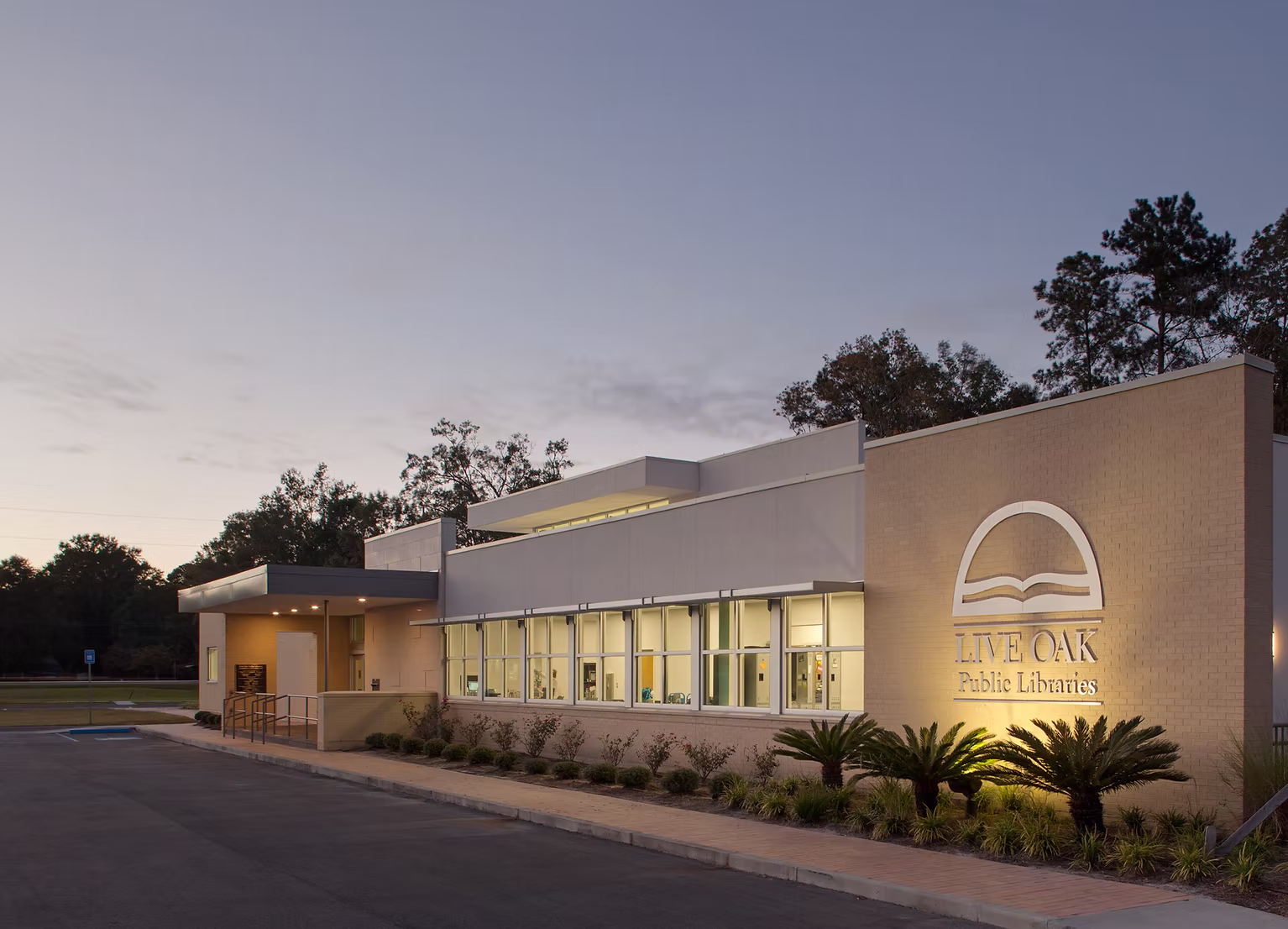 Tasked to develop a single design to be used on multiple sites for these two new Libraries in the Live Oak Public Libraries System. The project features a Browsing Area, Assembly Hall, Bookstore, Meeting Rooms, and a large Children’s Area, with central supervision and LEED Silver Objective. Wilmington Island & Garden City Ga..